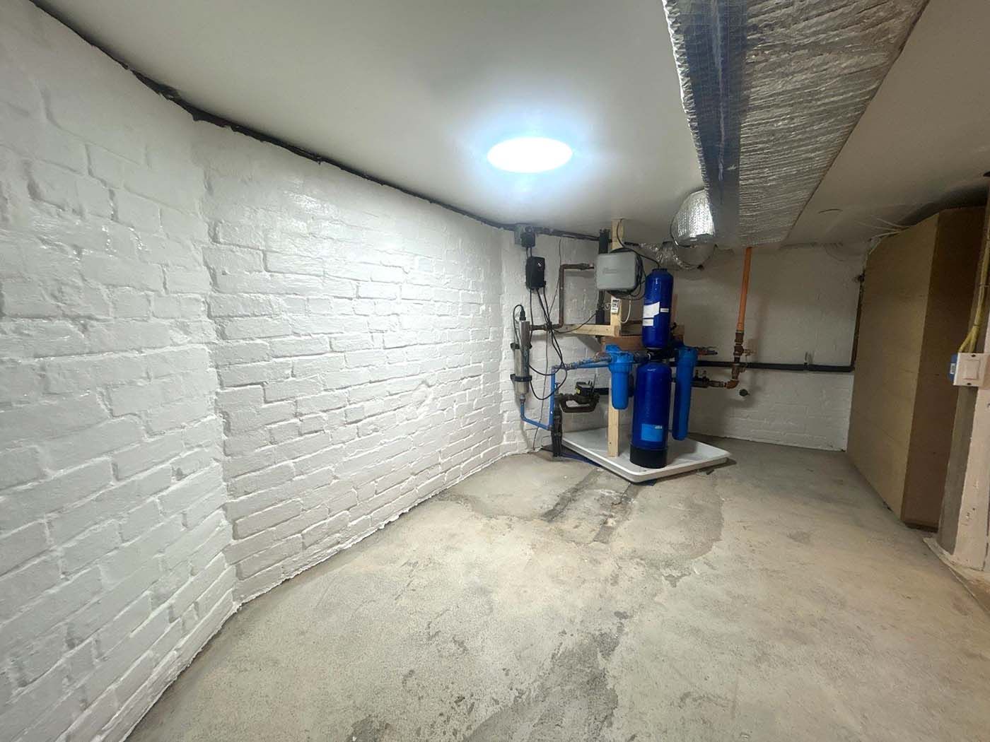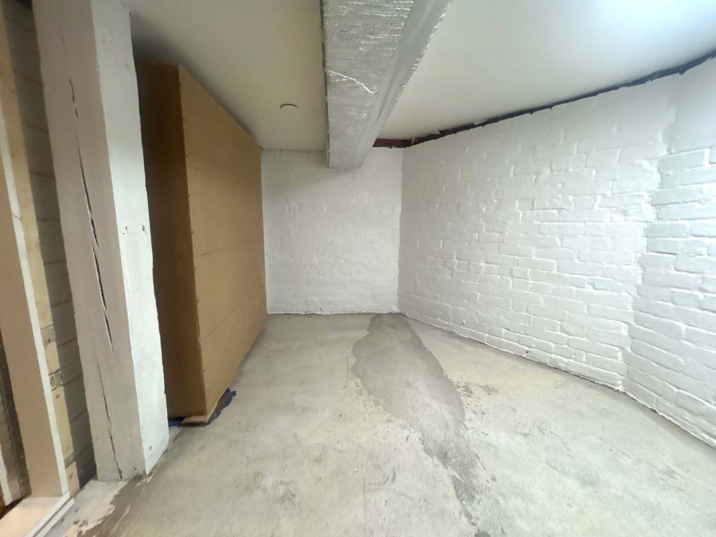 To protect the basement and prevent mold growth, our team recommended full mold encapsulation of the brick walls.